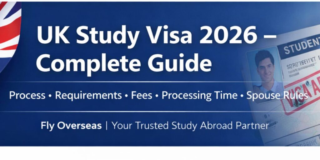 In this complete guide, Fly Overseas explains the UK study visa requirements, UK student visa fees, processing time, spouse visa options, and how to apply step by step.